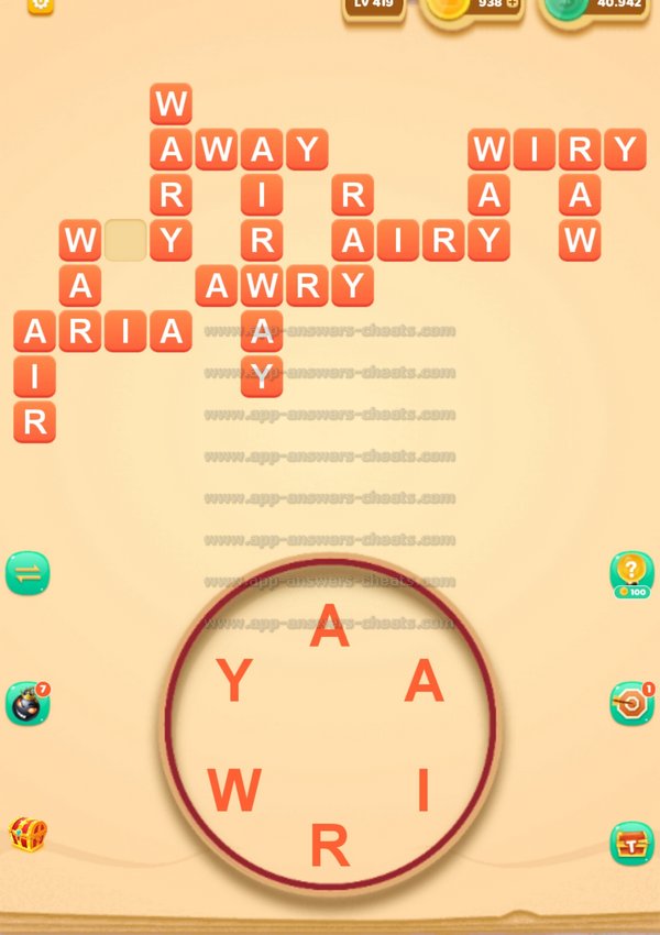 Here you can find Wordy Word Level 401-450 Answers, Cheats and Solutions all Levels. This game is a wonderful wordgame to relax your mind. You have to solve word puzzles by given letters. How is your vocabulary knowledge? Can you guess all hidden words? Can you complete all crosswords?